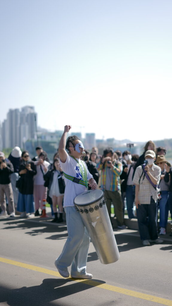 그래서일까. 잠수교는 나들이객, 퍼레이드의 참가팀 그리고 서울행진25와 드럼팬이 너나 할 것 없이 즐겁게 뒤섞여 노는 화합의 장이 되었다. 서울행진25의 연주자는 퍼레이드 참가팀에게 받은 풍선을 드럼 채와 함께 흔들며 행진하였고, 가면을 쓴 행렬은 서울행진25의 연주에 맞추어 몸짓을 하며 행진했다.